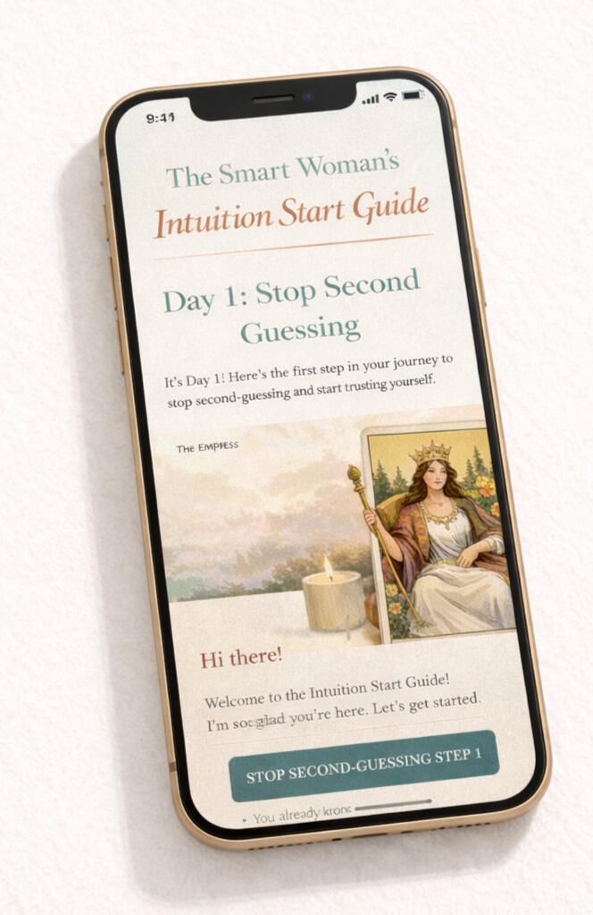 You're smart. You're serious about your growth. You've done the work — the journalling, the therapy, the courses, the conversations with people you trust.And you still second-guess yourself.Not because you're not smart enough. Because you're too close to it. Too inside your own life to see what's actually going on.This free 5-day email course shows you how smart women use tarot to cut through the noise — and finally hear what they already know.Five days. Five minutes each. Nothing to sustain.